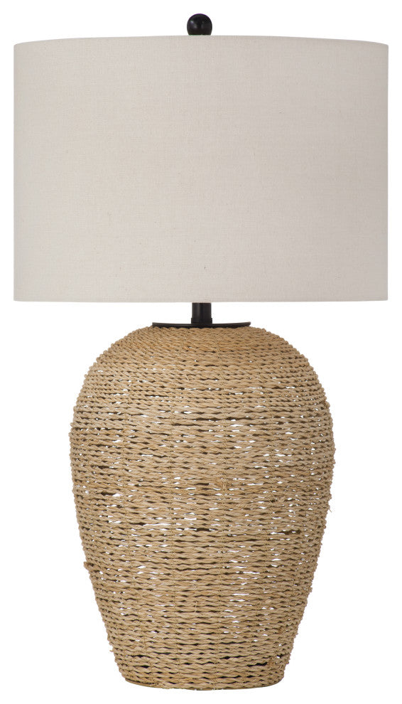 The Armstrong Table Lamp effortlessly blends coastal design with boho aesthetics, adding a touch of relaxed elegance to any space. Its charming rope detailing on the base brings a coastal vibe, while the linen drum-style shade adds a soft and inviting touch. Perfect for illuminating your living room, bedroom, or office, this lamp provides both style and functionality. Trustworthy and versatile, the Armstrong lamp enhances your decor with its understated yet chic presence. Illuminate your home with warm, ambient light, creating a cozy atmosphere for everyday living.