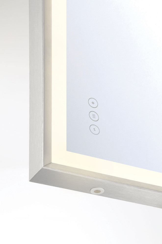 The Artell 24" x 36" mirror in brushed silver features a sleek rectangular design with integrated LED lighting. This modern and functional mirror is perfect for contemporary settings, particularly in bathrooms, bedrooms, and hallways, offering soft, ambient lighting and a sophisticated finish. This product is cETLus certified.•Number of Lights: 1•Bulb Type: LED integrated•Wattage: 65W•LED Color Temperature (K): 3000/4500/6400K•Dimmable: Yes•Bulb Included: Yes•Voltage: 120V•Hardwire or Plug-in: Hardwired