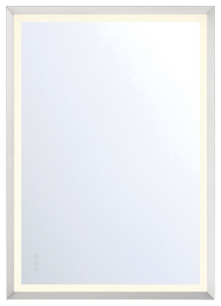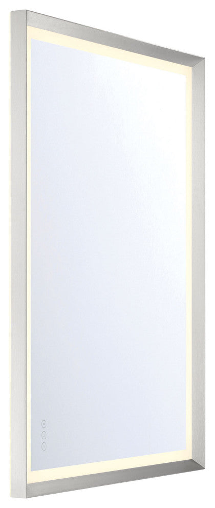 This 30" x 42" rectangular Artell Mirror in Brushed Silver brings a sleek and sophisticated ambiance to any room. Featuring integrated LED lighting, it provides optimal brightness for daily grooming or relaxation. The contemporary design and durable silver finish make this mirror a timeless piece suitable for bathrooms, bedrooms, or entryways. This product is cETLus certified.•Number of Lights: 1•Bulb Type: LED integrated•Wattage: 80W•LED Color Temperature (K): 3000/4500/6400K•Dimmable: Yes•Bulb Included: Yes•Voltage: 120V•Hardwire or Plug-in: Hardwired