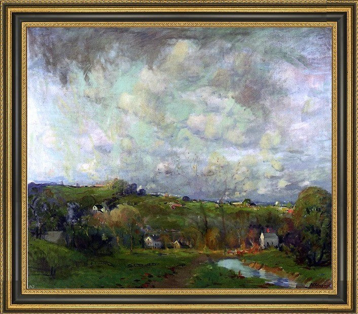 20" x 25" Arthur Clifton Goodwin Saugus Marshes framed premium canvas print reproduced to meet museum quality standards. Our Museum quality canvas prints are produced using high-precision print technology for a more accurate reproduction printed on high quality canvas with fade-resistant, archival inks. Our progressive business model allows us to offer works of art to you at the best wholesale pricing, significantly less than art gallery prices, affordable to all. This artwork is hand stretched onto wooden stretcher bars, then mounted into our 3 3/4" wide gold finish frame with black panel by one of our expert framers. Our framed canvas print comes with hardware, ready to hang on your wall. We present a comprehensive collection of exceptional canvas art reproductions by Arthur Clifton Goodwin.