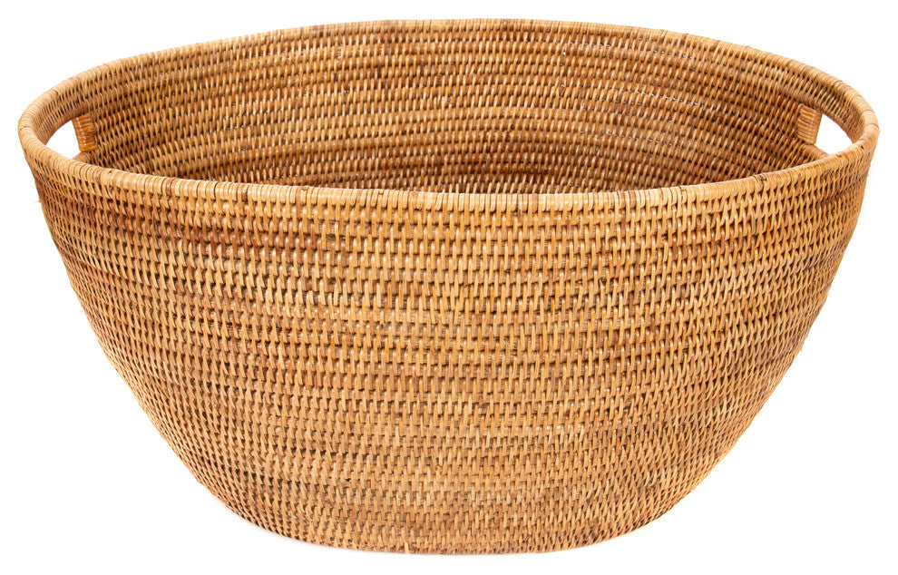 It is important to furnish your bedroom with pieces you love that are comfortable and suit their purpose. This rounded laundry basket with cutout handles will solve all your storage woes and is durable and functional. Make your bedroom or bathroom shine with our rattan hand-woven basket and make taking the laundry out a snap. Products are handmade, each piece is unique therefore slight variations and imperfections exist. Artifacts Trading Company manufactures a great line of rattan items for your table and home.-Dimensions: 25"x17"x12"-Hand Woven by Local Artisans from Burmese Rattan-Natural and Sustainable Product-Wipe Clean with Damp Cloth-Made in Myanmar