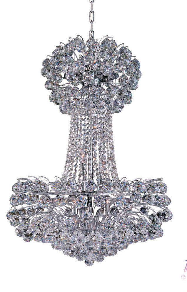 Traditional chandelier from Artistry Lighting. Name: Sirius Collection 1806C26 Width: 26" Height: 36" Light: 15Fixture Type: Hardwire Number of Lights: 15Bulb Type: Candelabra Maximum Wattage/Item: 600 Maximum Wattage/Socket: 40 Socket Type: Candelabra Cord/Supply Wire Color: Chrome Cord Length: 12'' Chain Length: 6'' Chain Warranty: Additional five year for frame Crystal Quality: Grand King Cut Crystal - high quality crystalCountry of Origin: United States (Bulbs not included)UL APPROVED