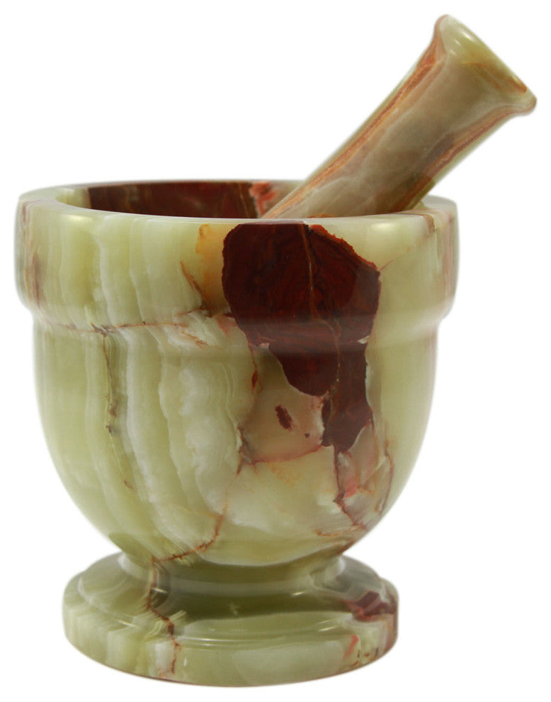 Asclepius Collection Whirl Green Onyx Large Mortar and Pestle Set