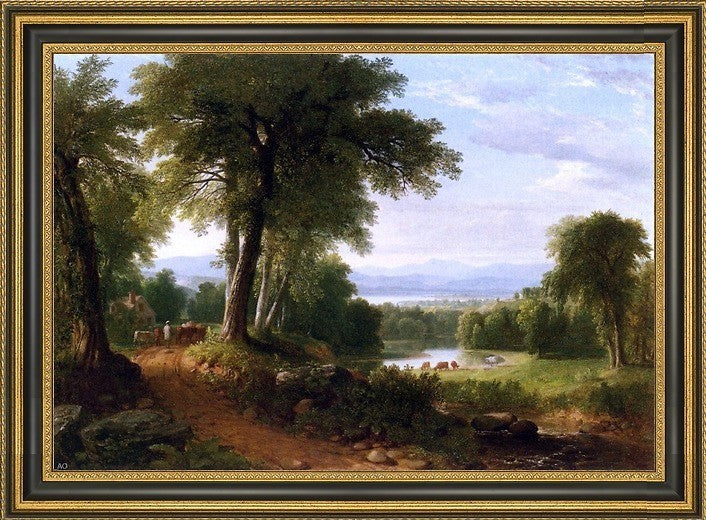 18" x 27" Asher Brown Durand After a Summer Shower framed premium canvas print reproduced to meet museum quality standards. Our Museum quality canvas prints are produced using high-precision print technology for a more accurate reproduction printed on high quality canvas with fade-resistant, archival inks. Our progressive business model allows us to offer works of art to you at the best wholesale pricing, significantly less than art gallery prices, affordable to all. This artwork is hand stretched onto wooden stretcher bars, then mounted into our 3 3/4" wide gold finish frame with black panel by one of our expert framers. Our framed canvas print comes with hardware, ready to hang on your wall. We present a comprehensive collection of exceptional canvas art reproductions by Asher Brown Durand.