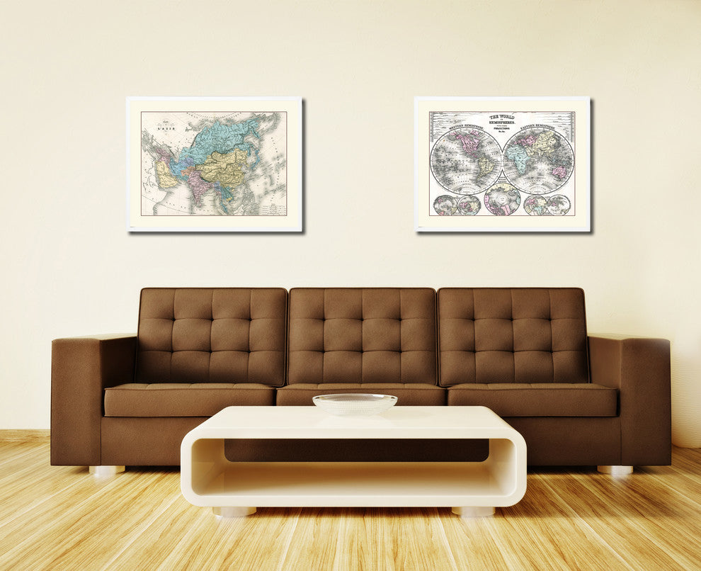 Asia Old Map Print On Canvas With Picture Frame Art Collection 16" X 21"