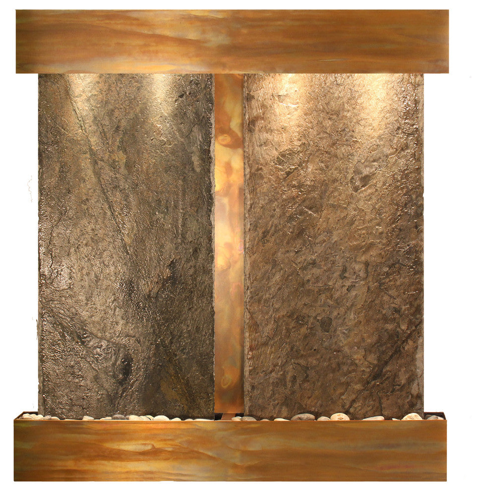 Aspen Falls Water Fountain, Natural Green Slate, Rustic Copper, Square