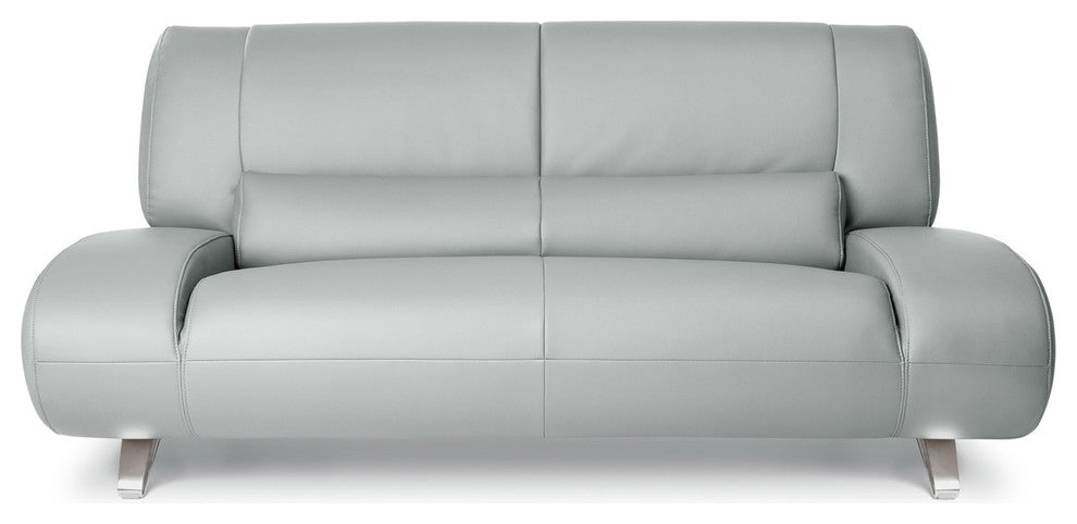 Suggestive of futuristic and mod designs from the past, the ultra-luxurious Aspen Sofa set is the perfect fit for any contemporary home or office. The innovative design boasts sleek, simple, soft lines that maximize style and relaxation. The group consists of a sofa, loveseat, and armchair. It is available in your choice of bright white, jet black, taupe brown, and light grey microfiber leather with a leatherette match on the sides and back. The cushioned design is built on top of a sturdy kiln-dried hardwood frame. A supportive ergonomic fixed lumbar pillow and shiny polished stainless steel legs complete the unique look. Bring home the thoroughly modern Aspen Sofa Group today to add style and comfort to your space.