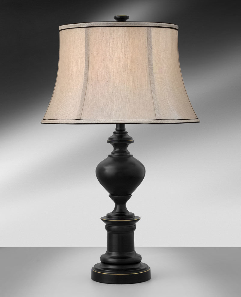 Standard Lamp Specifications for #MB985:Product Type: Table LampHeight: 28"Finish: Madison BronzeConstruction: SteelSocket: (1) Aluminum 3-way Med. Base Type A 150W Max socket(s). (Bulb(s) not included)Switching: (1) 3-way turn knob switch(es) located on the socket.Cord: 6''5'' (from base) long brown SPT-2 cord set with a 2 prong polarized plug.UL/CUL and/or ETL listed: YesHarp Size: 8 inches (including the saddle)Standard Packing: 2 per carton (shade packed separately).Lamps & Shades per SKU: 2Lamping: (1) Aluminum 3-way Med. Base Type A 150W Max socket(s).Shade Size and Description: Grey Silk Drum bell shade with Black underfold trim measuring 12" x 16" x 10" w/ .5" drop (Top x Bottom x Slant).Bulb Included: NoMaterial Description: constructed from polished, plated, and lacquered steel.