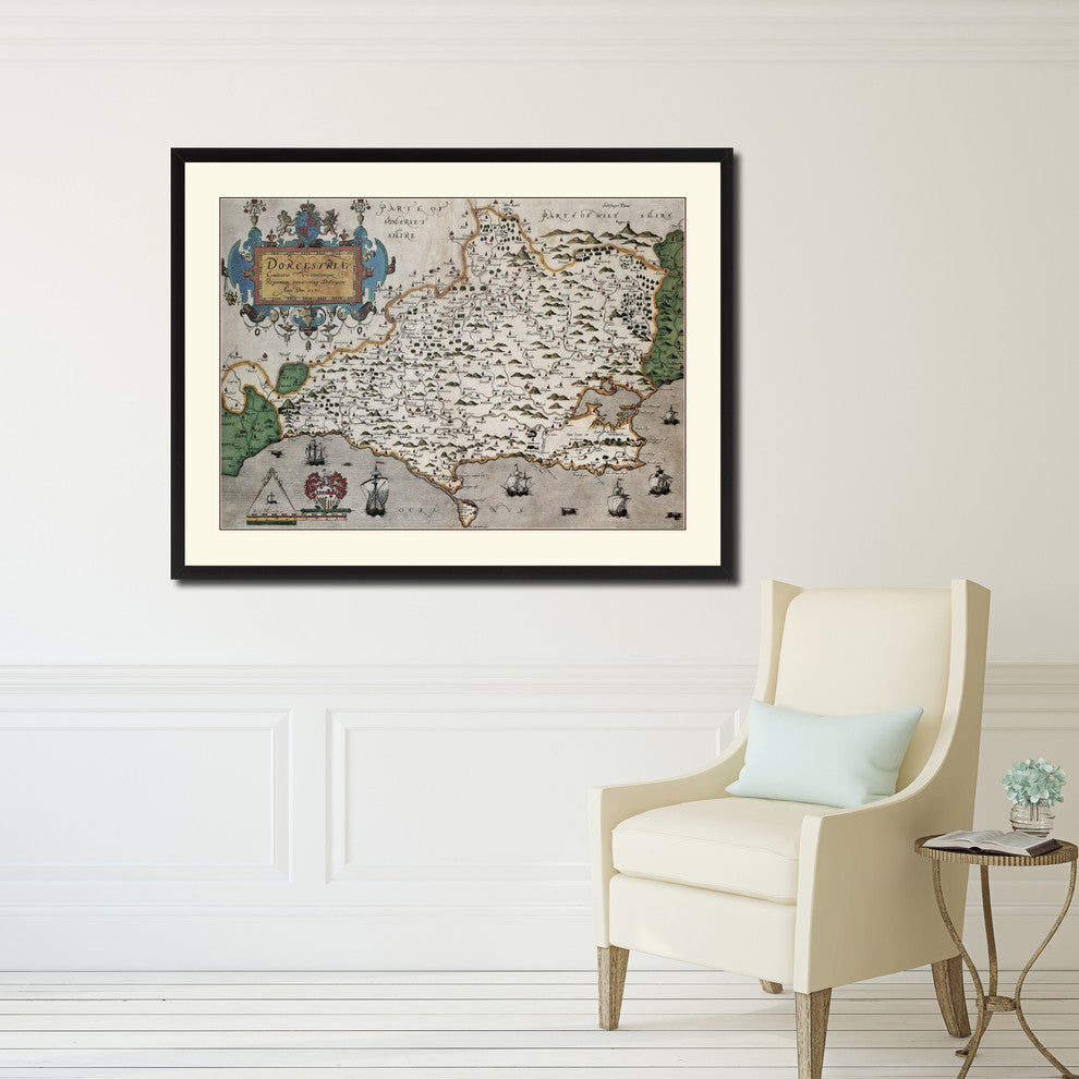 Atlas Of England and Wales Map Print On Canvas With Picture Frame 28" X 37"