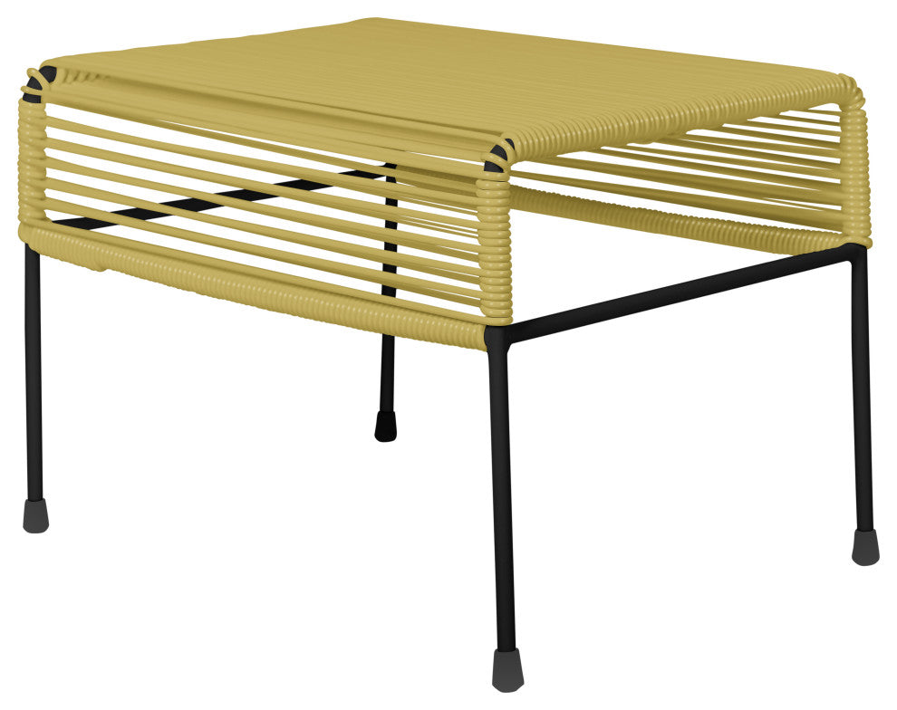 Atom Indoor/Outdoor Handmade Ottoman with Black Frame, Gold Weave