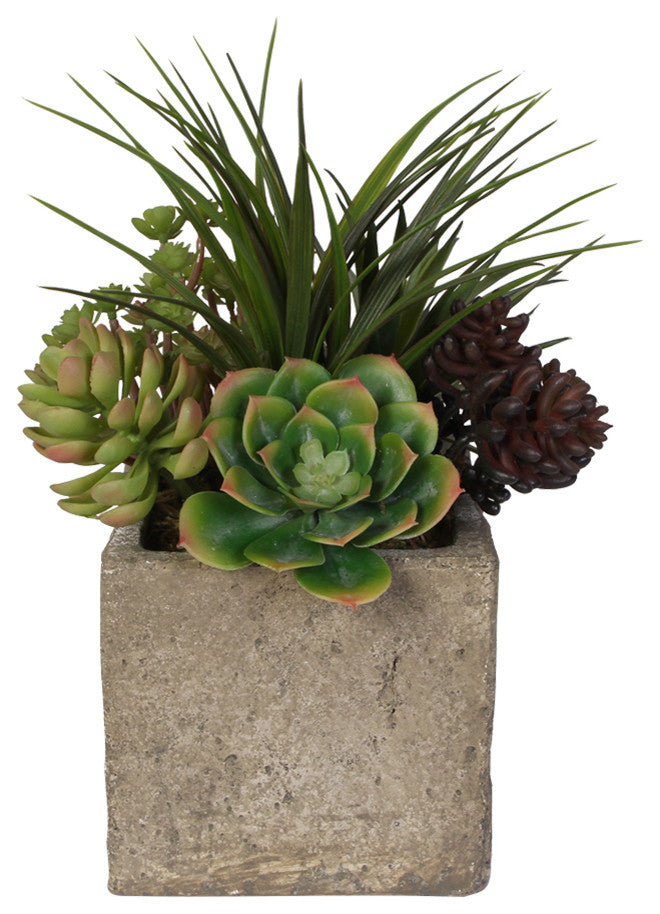 Attractive Succulent Arrangement in a Concrete Cube