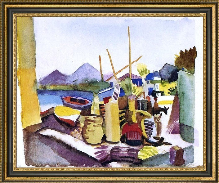 16" x 20" August Macke Landscape near Hammamet framed premium canvas print reproduced to meet museum quality standards. Our Museum quality canvas prints are produced using high-precision print technology for a more accurate reproduction printed on high quality canvas with fade-resistant, archival inks. Our progressive business model allows us to offer works of art to you at the best wholesale pricing, significantly less than art gallery prices, affordable to all. This artwork is hand stretched onto wooden stretcher bars, then mounted into our 3 3/4" wide gold finish frame with black panel by one of our expert framers. Our framed canvas print comes with hardware, ready to hang on your wall. We present a comprehensive collection of exceptional canvas art reproductions by August Macke .
