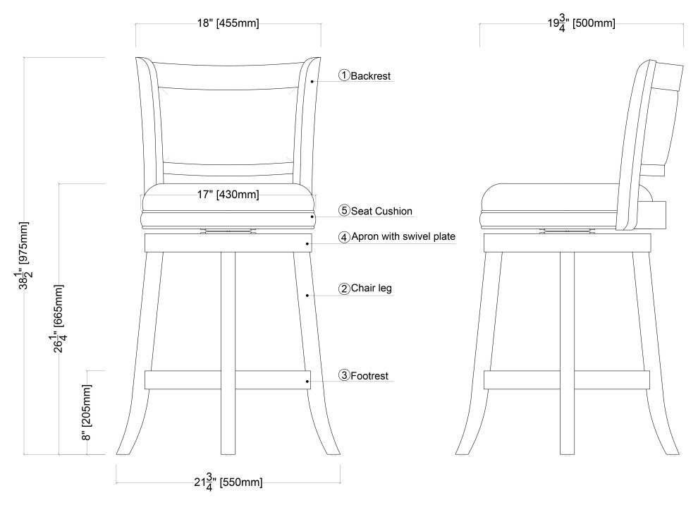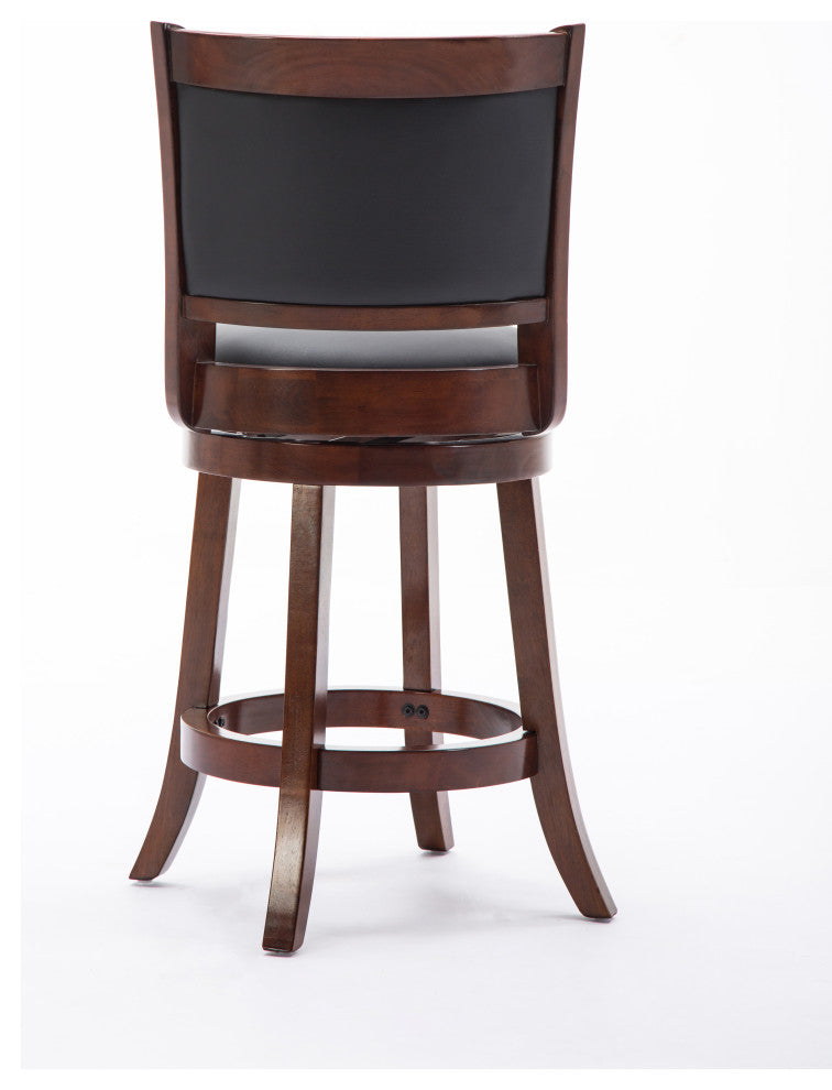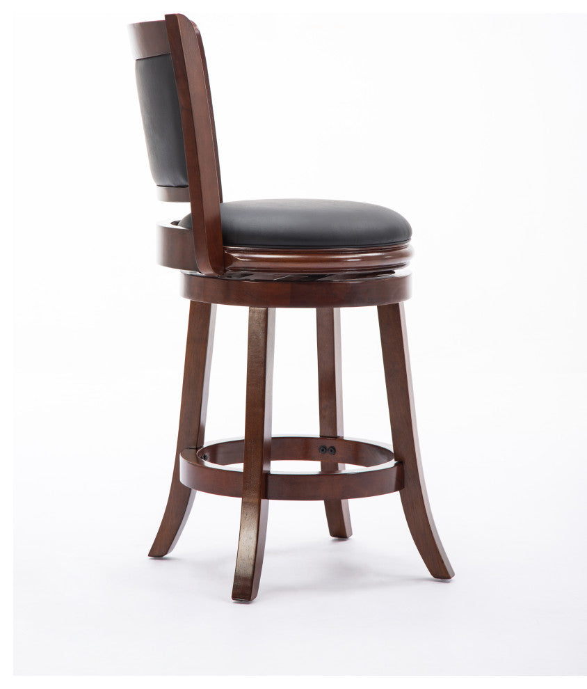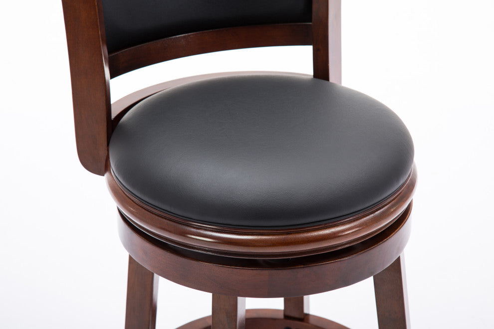 The Augusta Swivel Stool from Boraam Industries, Inc. boasts a solid hardwood footrest. Boasting a 360-degree swivel mechanism, this piece has been designed with your comfort in mind. This stool also features a high-density foam seat and backrest cushion upholstered in shiny black faux leather. Exuding a warm, luxurious feel, thanks to its rich colors and sumptuous textures, this swivel stool from Boraam Industries, Inc. makes a sophisticated addition to any interior space.Counter-height stoolHardwood footrest360-degree swivel mechanismAssembly required.Cherry finishSeat height: 24.5"Maximum weight capacity: 300 lbs.