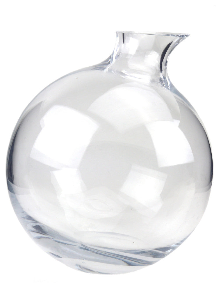 The Aurora Vase in clear glass can be used as a decorative object and also work perfectly with an arrangement of flowers to create a one of a kind interior design style to make your home stand out. This clear glass vase is perfect for parties, weddings, special events or everyday use. The extraordinary quality and elegant design of this hand blown vase, 11" Ht. 8.5" Dia., adds style and a sense of luxury to your home. Made in Poland. As each item is individually handcrafted, no two pieces are exactly alike with slight variations in size and color. Aurora Vase Clear 11" Ht. 8.5" Dia.Made in PolandAs each item is individually handcrafted, no two pieces are exactly alike with slight variations in size.