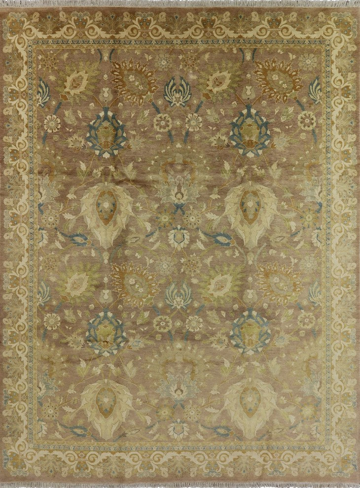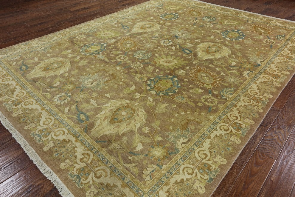 Authentic Oushak Hand-Knotted Mocha Peshawar Chobi Oriental Wool Rug, 9'x12'