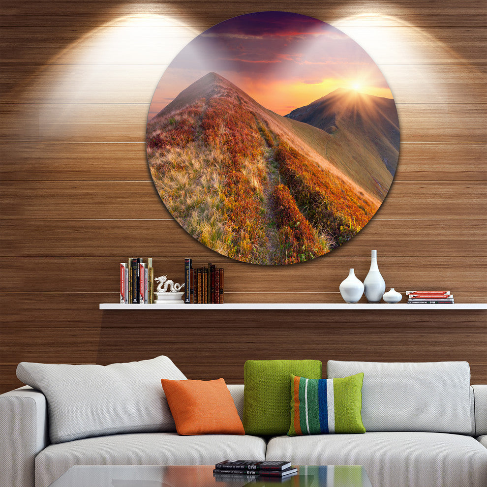 Autumn Hills With Colorful Grass, Landscape Round Metal Wall Art, 11"