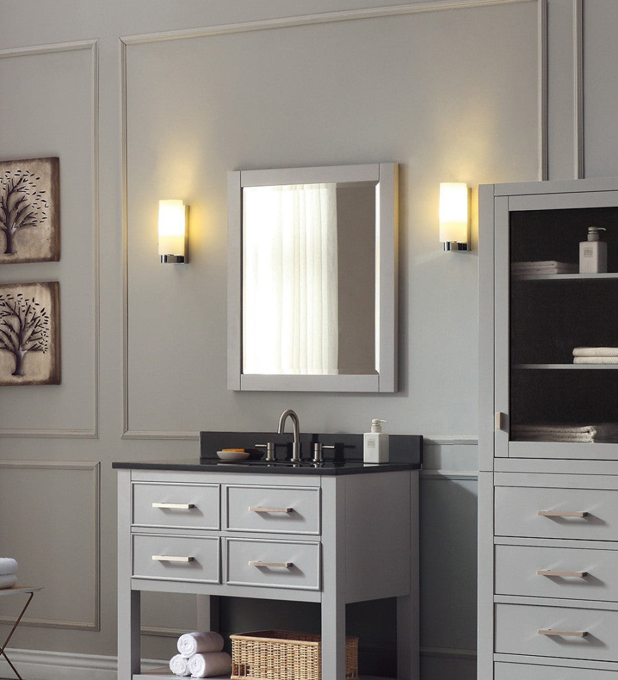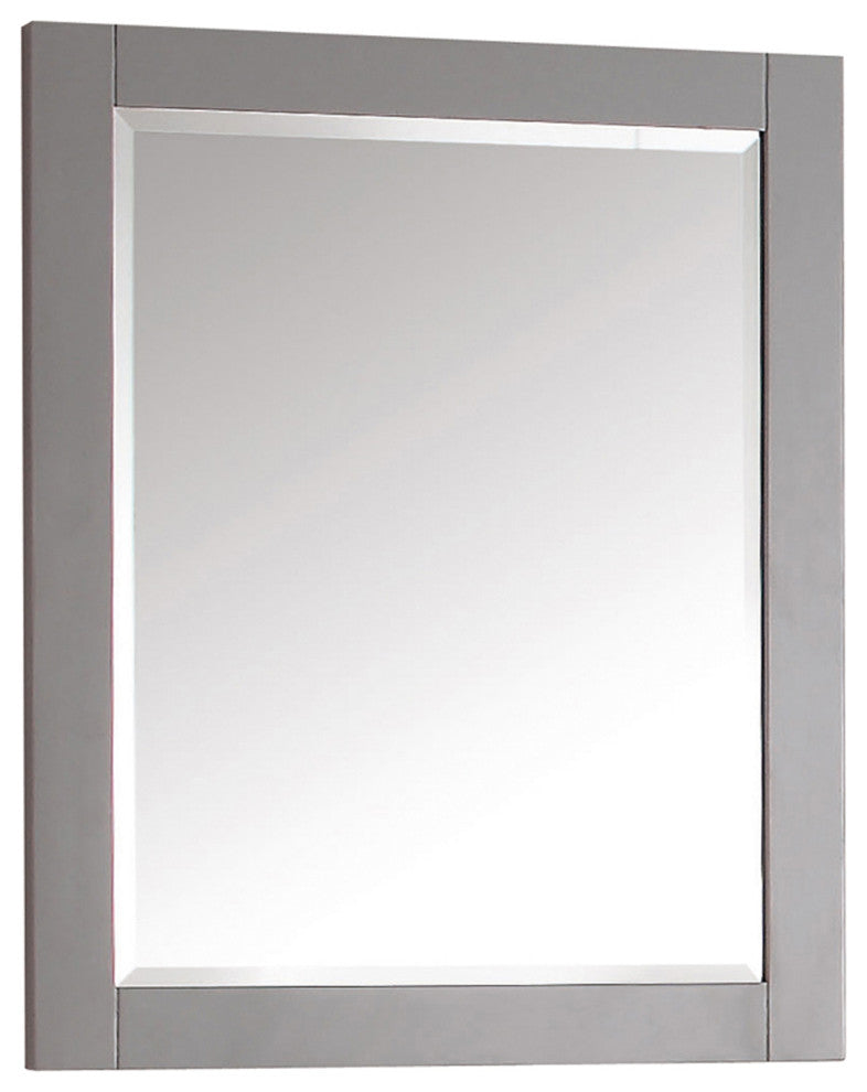 The Avanity 24 in. X 30 in. poplar wood framed mirror features a contemporary Chilled Gray finish and a simple clean design. It matches with several collections (Brooks, Modero) for a coordinated look and includes mounting hardware for easy installation. The mirror hangs horizontally and vertically.