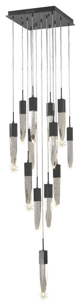 13 Light Pendant from Aspen collection in Dark Bronze finish. Number of Bulbs 13. Max Wattage 3.00 . No bulbs included. The Collections magnificent cascading LED points encased by hand polished solid crystals will give your space a very dramatic modern feel. This 13-light cluster chandelier in dark bronze is perfect for any space. No UL Availability at this time.