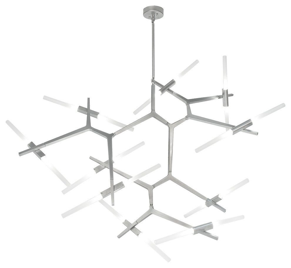 The San Vicente Blvd. Collection was inspired by the angular famous LA street. A modular metal structure, with articulated joints that allow the bulbs to be rotated and arranged in a multitude of ways on each arm.Collection Name: San Vicente Blvd.Finish: Matte Chrome.Dimension: 59"(H) x 43"(W. or Dia.) x 61.5"(L)Bulb: (20)3W G9 LED(Included).Voltage: 120 Volt.Kelvin: 3000.Lumens: 5600.CRI: 80.Average Hours: 50000.Some Assembly required .1 year limited electrical warranty .Listing: UL.
