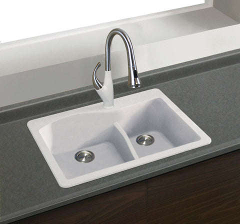 Aversa SilQ Granite 33-in. Drop-in Kitchen Sink with 3 BAE Faucet Holes in White