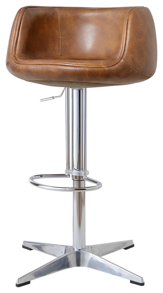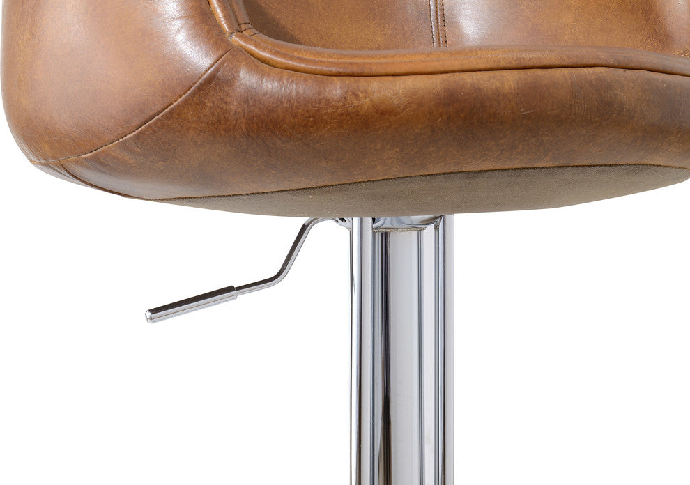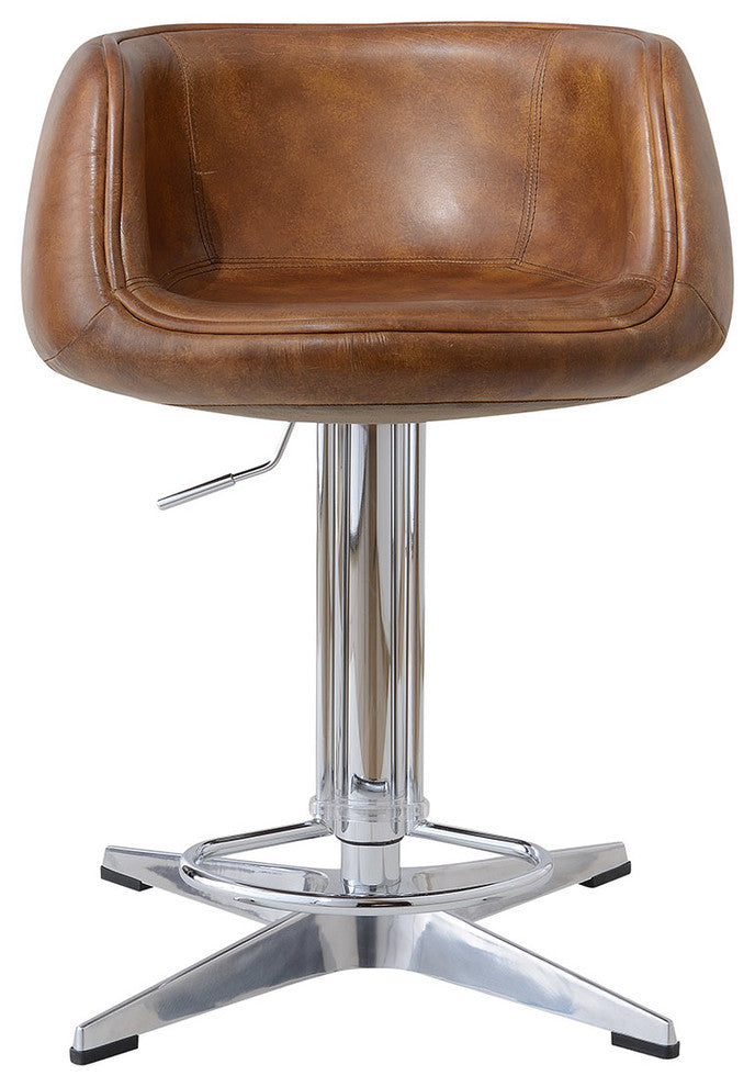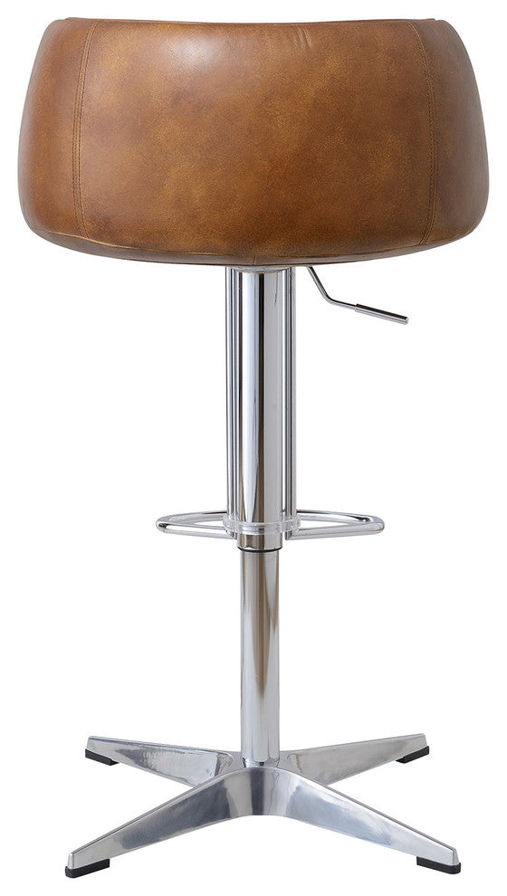 Industrial Chic bar stool with metal base Adjust height up or down with hydraulics Comfortable brown genuine leather seatMetal base• This price is for 1 bar stoolProduct Dimensions: 22" wide x 20" deepHeight is adjustable between 30"-39"