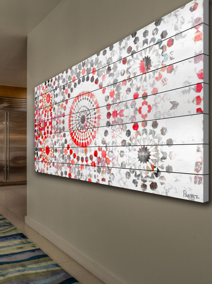 Striking and unique, the "Bab Taza" Print on White Wood by Parvez Taj will bring your walls to life. Printed on white wood, this 60 inch wide by 30 inch tall contemporary artwork will make a statement in any living room, dining room, or bedroom.- Fine art UV ink print on white wood by Parvez Taj- wood pieces are hand-selected by Fine craftsmen for printing- Arrives ready to hang- Includes a certificate of authenticity- Artist signature on the front