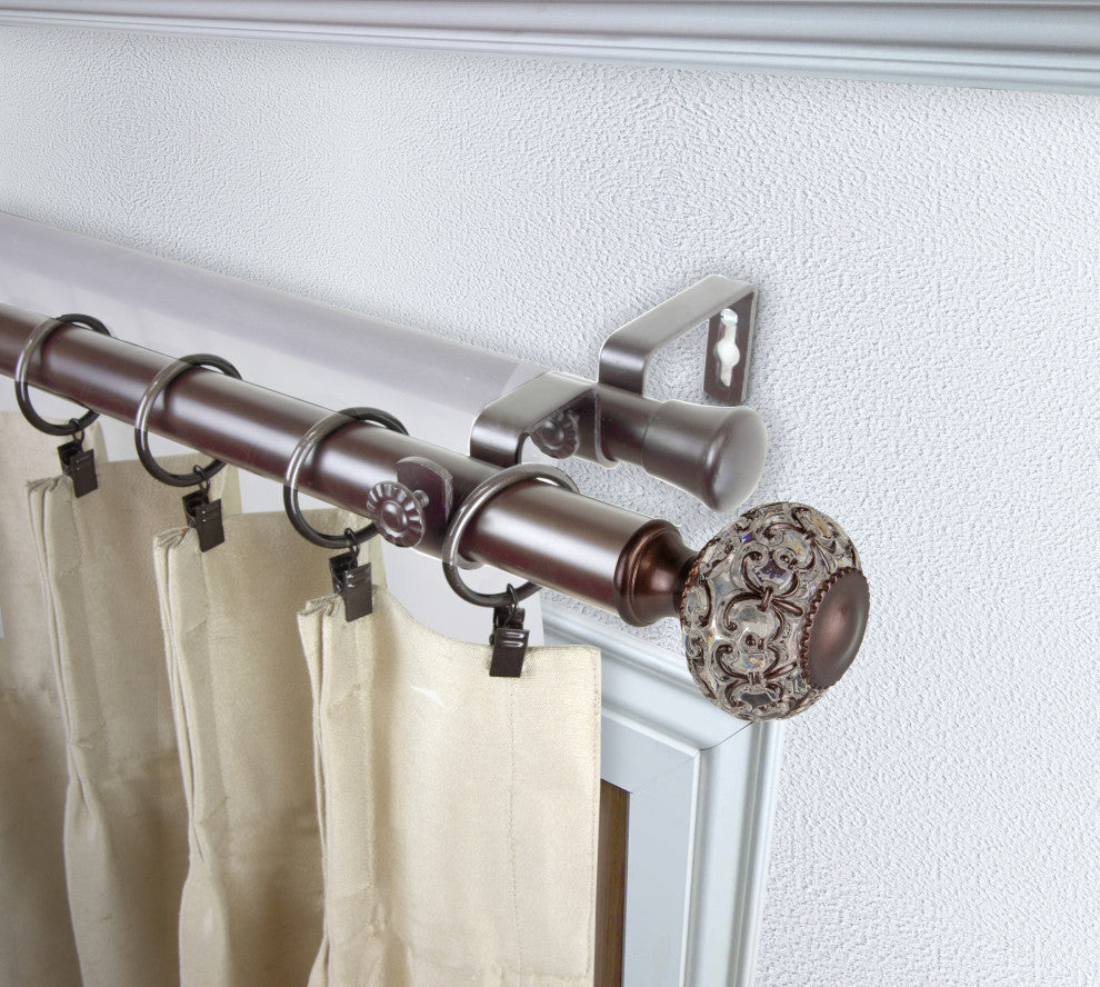 Bailey 1" Diameter Double Curtain Rod, Bronze, 120-170"