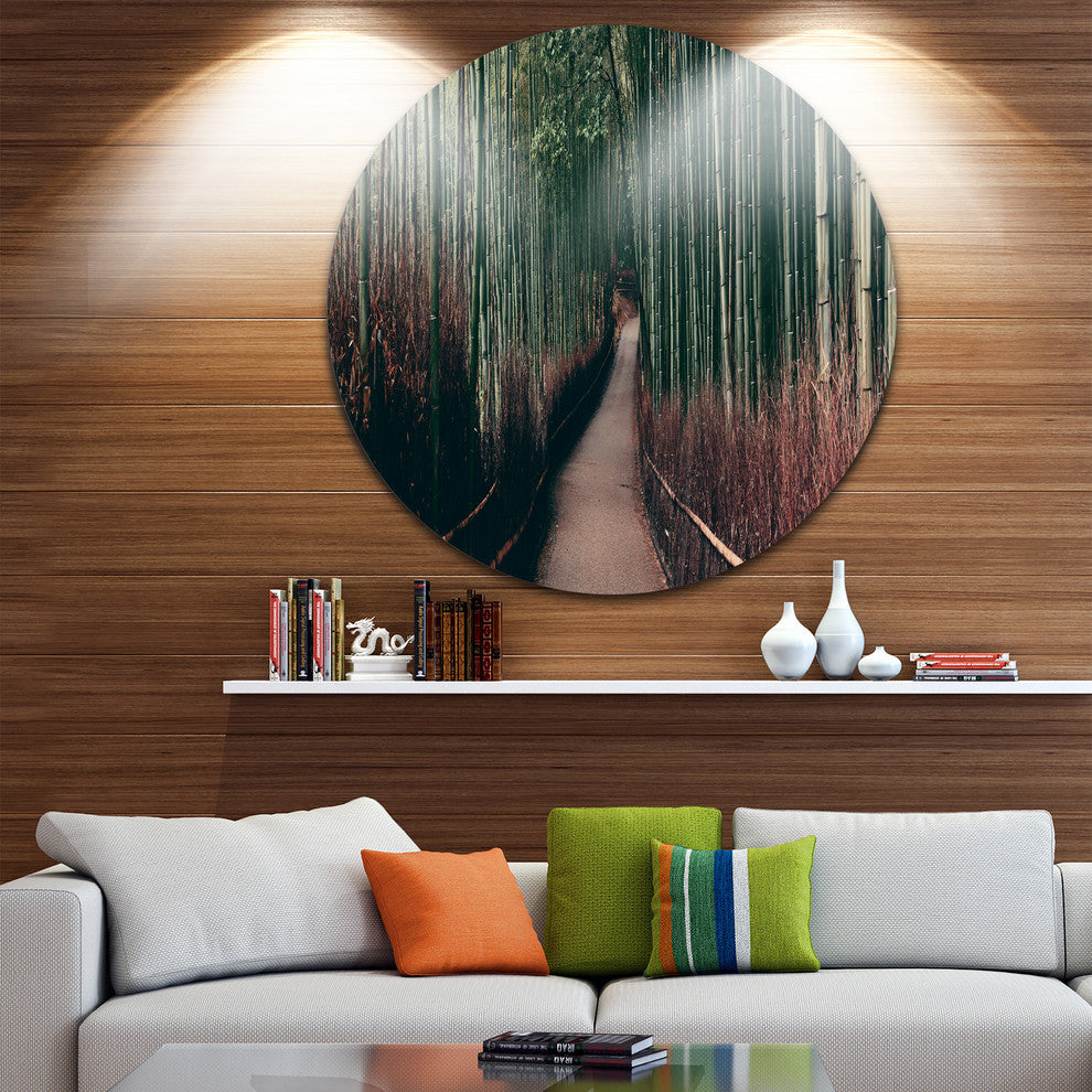 Bring Contemporary Abstraction to your home with this large Circle Metal wall art. This Bamboo Grove in Arashiyama Panorama Metal Artwork makes it the focal point of any room or office.