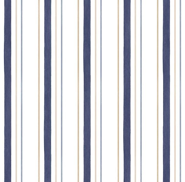 Bar Code Stripe Wallpaper, Navy Blue/Taupe/White, 1 Bolt