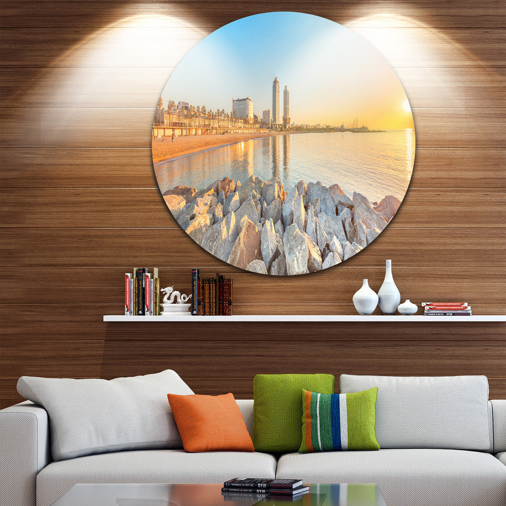 Barceloneta Beach In Barcelona, Seashore Photo Disc Metal Wall Art, 23"