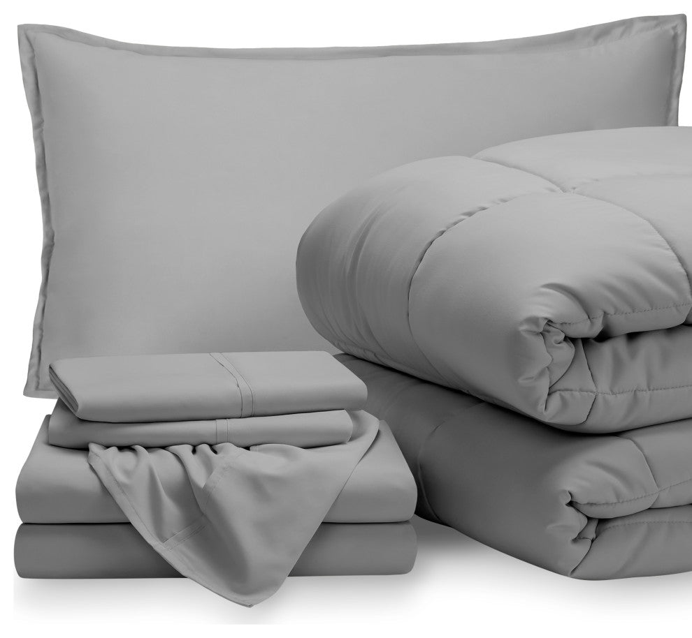 Bare Home 5-Piece Twin Bed-in-a-Bag, Light Gray, Light Gray