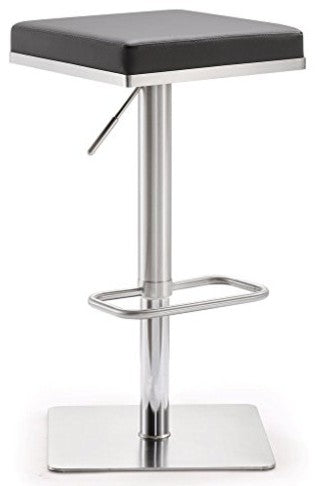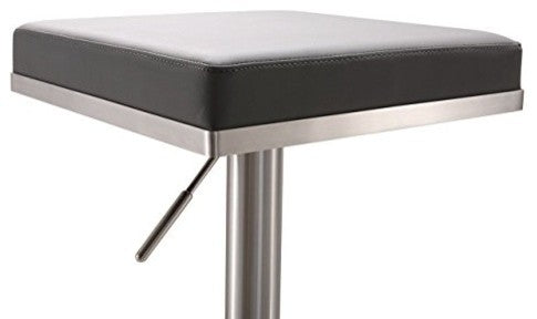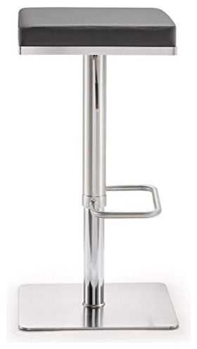 Furnish your kitchen or bar area in contemporary style with the Bari stool from TOV. The solid stainless steel frame provides a sturdy base, while the plush seat and footrest ensure maximum comfort. The combination of angles and gentle curves gives this stool an eye-catching appearance, while the neutral color allows it to match well with any decor.CA117-2013 Fire Retardant FoamStainless steel frame and footrestAdjustable seat height with gas lift360° Swivel seatComfortable eco leather upholstered seatSquare base with rounded cornersFor residential or commercial useAvailable in black, white or greyMinor assembly requiredFoam Type : CA117-2013 Fire Retardant FoamProduct Color : GreyProduct Materials : Stainless SteelLeg Color : Stainless SteelLeg Material : Stainless SteelSeat Width : 14.4"Seat Depth : 14.4"Seat Height : 21.65"Dimensions : 14.4"W x 14.4"D x (21.65 - 31.5)"HProduct Weight : 27.5 LBs