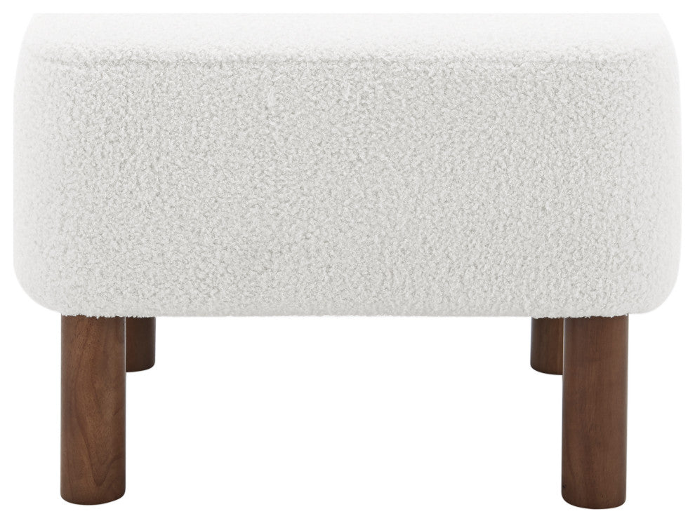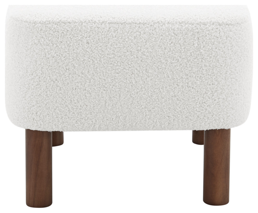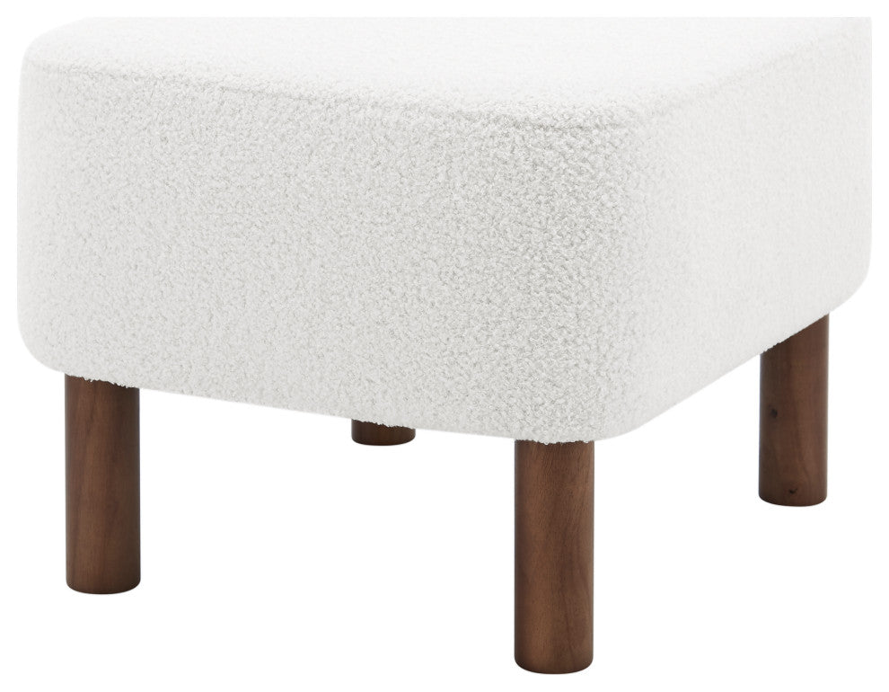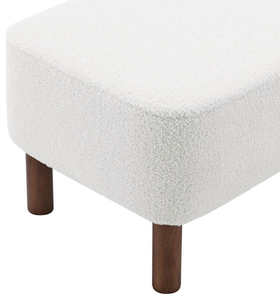 Beatrice Ottoman, White Fabric With Walnut Stained Wood Legs