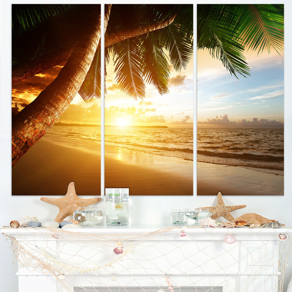"Beautiful Beach Under Palms" Metal Wall Art, 3 Panels, 36"x28"