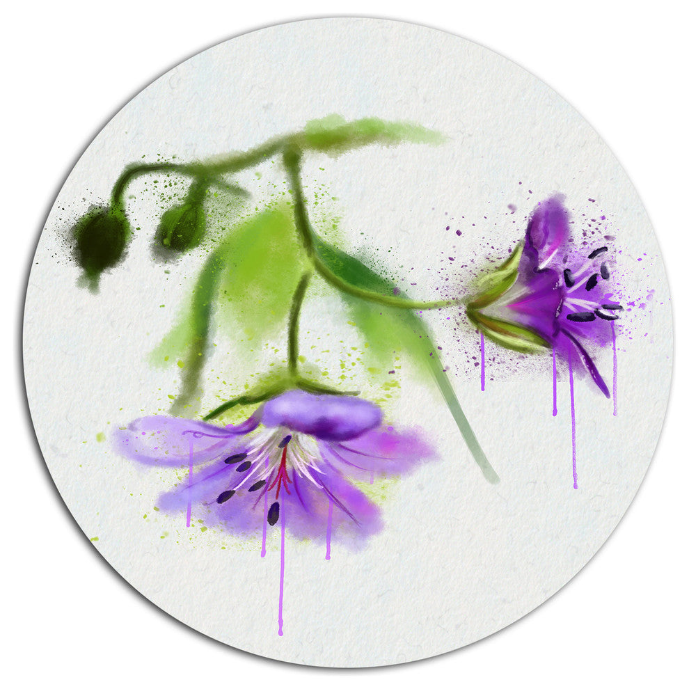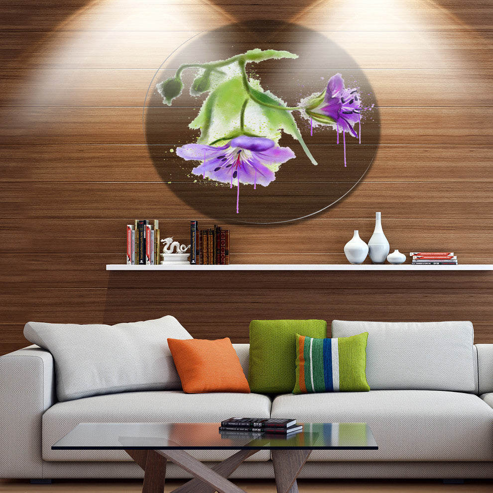 Beautiful Blue Flowers With Stem, Floral Large Disc Metal Wall Art, 11"