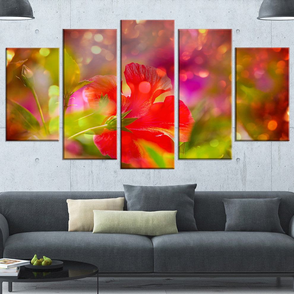Beautiful Red Rural Summer Flowers, Floral Canvas Art Print, 60"x32", 5 Panels