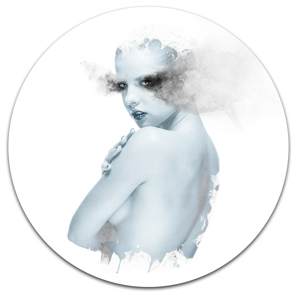 Bring Contemporary Abstraction to your home with this large Circle Metal wall art. This Beautiful Young Woman Double Exposure Metal Artwork makes it the focal point of any room or office.