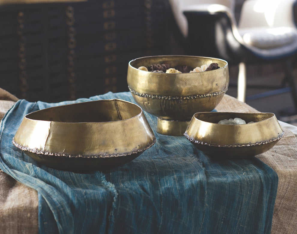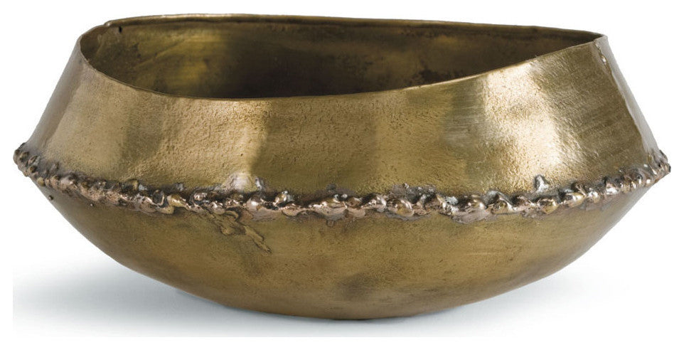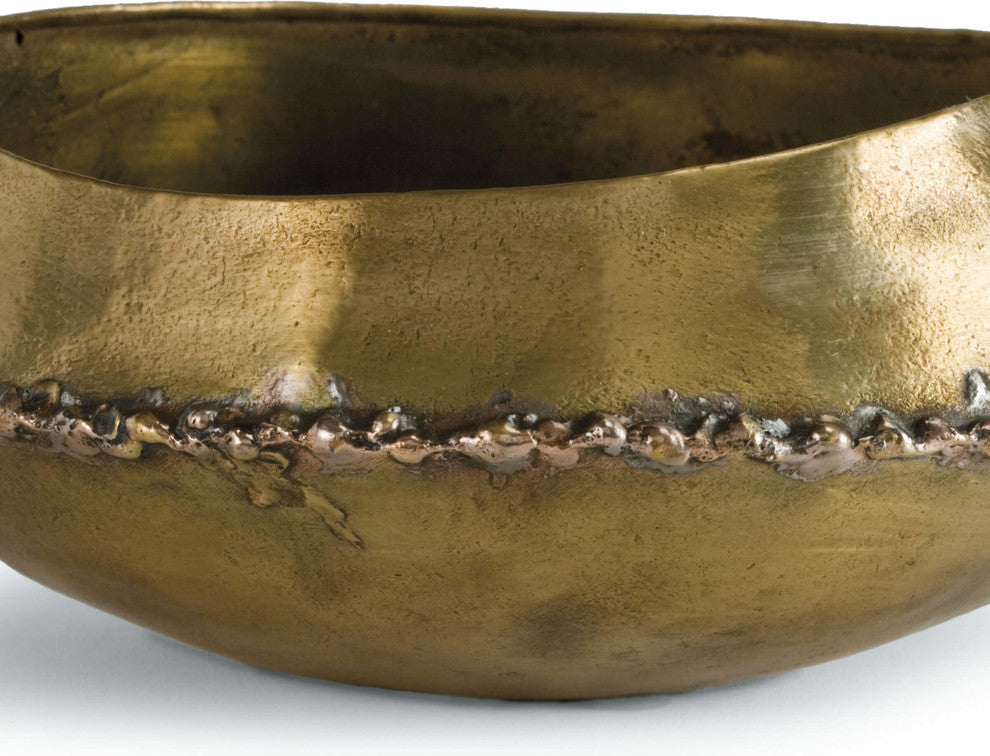 This bowl features a round silhouette with a soldered seam that rings the design. Carefully crafted in brass, this bowl boasts a natural recycled brass finish.