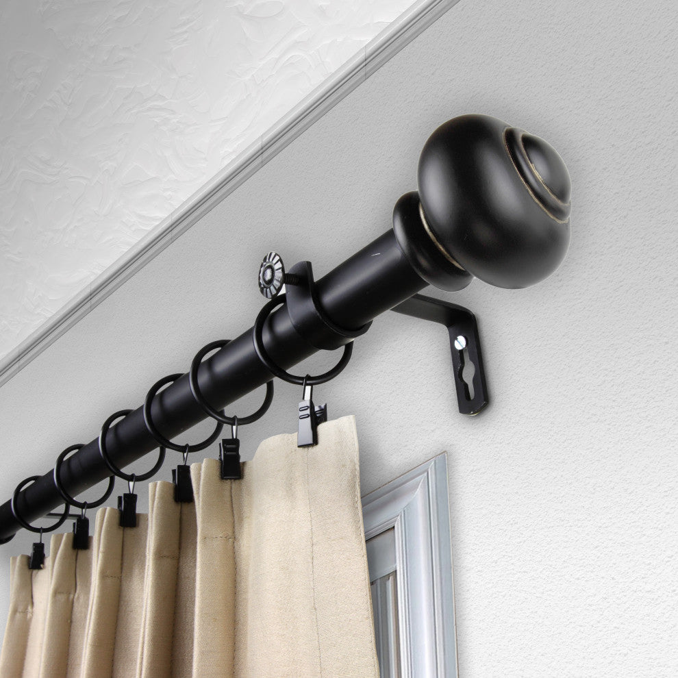 Bedpost 1" Curtain Rod, Black, 48"-84"