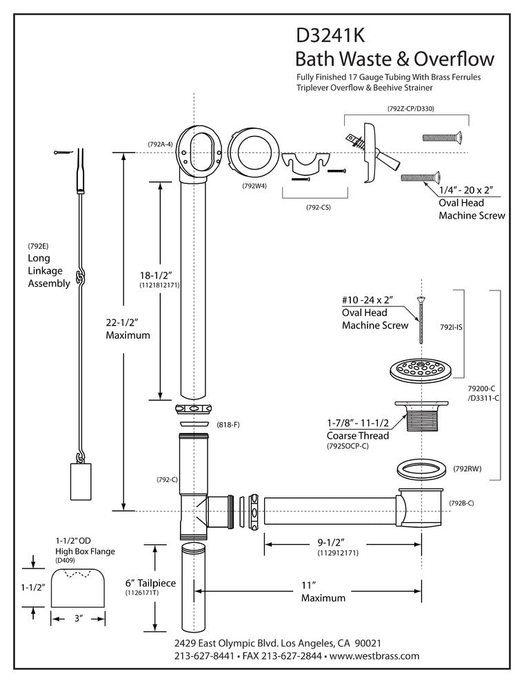 This simple to use bath drain plug from Westbrass features a trip-lever style mechanism to easily open and close your tub drain. This style is ideal for waste and overflow drainage, and uses a Gerber-style grid drain for straining. Use in all exposed locations, where all tubes and fittings are in view. Heavy 17 ga. brass tubing combine with cast brass fittings to make an overflow designed to last. Available in a variety of finishes, this item is sure to complement your existing decorative fixtures.