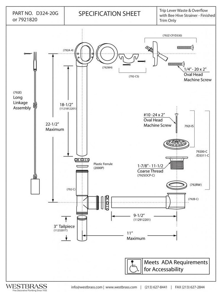 This simple to use bath drain plug from Westbrass features a trip-lever overflow mechanism to easily open and close your tub drain. This style is ideal for waste and overflow drainage and uses a Gerber-style grid drain for straining. Consumer grade 20 ga. brass tubing combine with cast brass fittings to make an overflow designed to last. Available in a variety of finishes, this item is sure to complement your existing decorative fixtures.