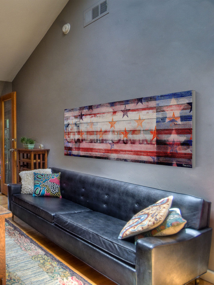 "Behind the Stripes" Print on White Wood, 45"x15"