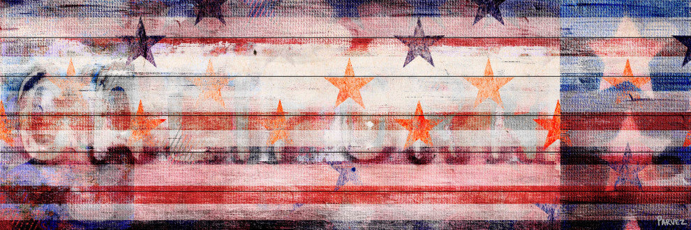 Striking and unique, the "Behind the Stripes" Print on White Wood by Parvez Taj will bring your walls to life. Printed on white wood, this 45 inch wide by 15 inch tall contemporary artwork will make a statement in any living room, dining room, or bedroom.- Fine art UV ink print on white wood by Parvez Taj- wood pieces are hand-selected by Fine craftsmen for printing- Arrives ready to hang- Includes a certificate of authenticity- Artist signature on the front