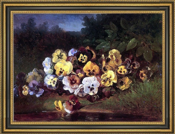 Benjamin Champney Pansies Framed Premium Canvas Print, 18"x27"