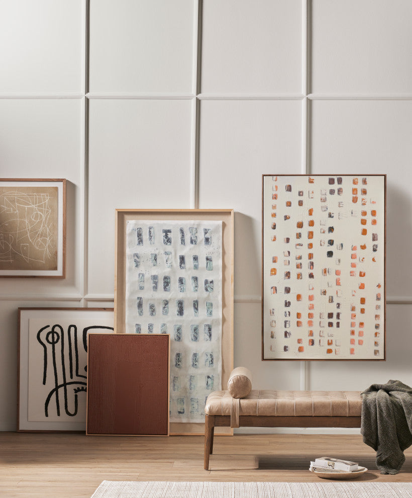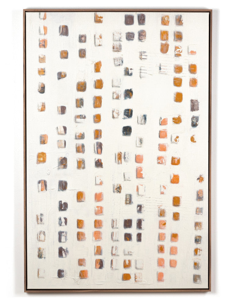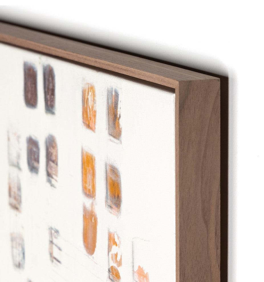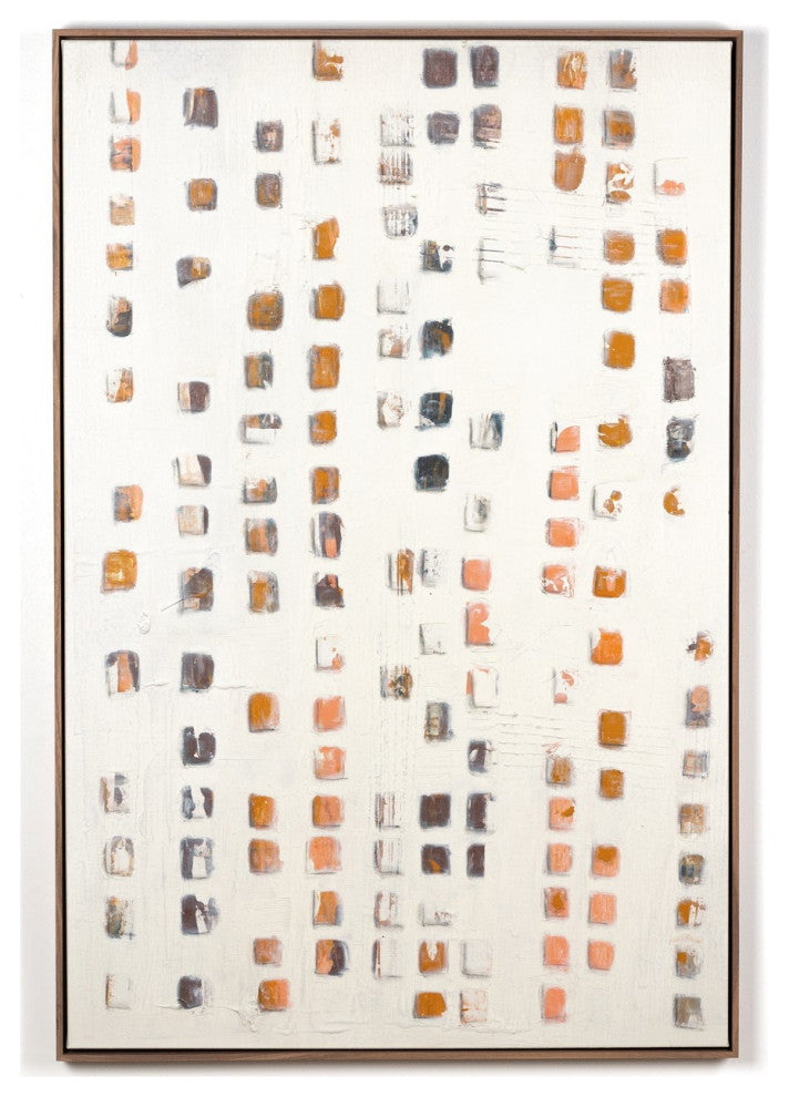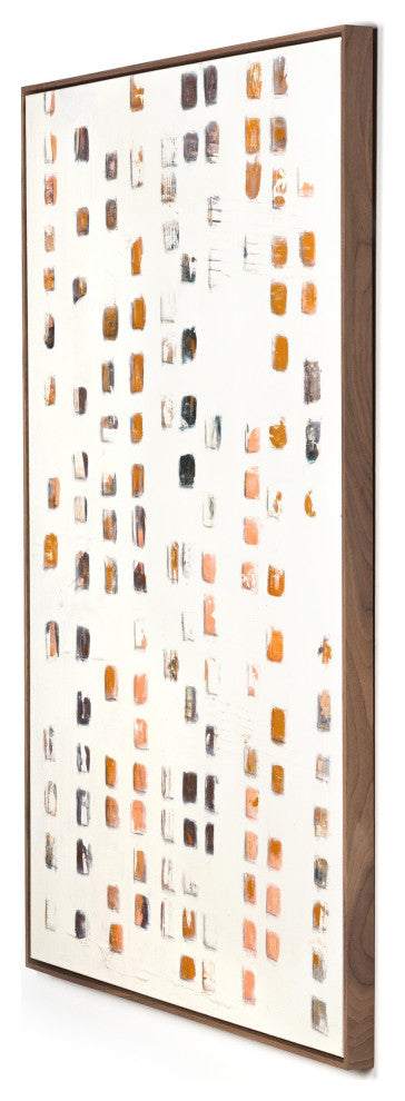 Nashville-based artist Jamie Beckwith creates contemporary pieces inspired by nature, travel and architecture. With a focus on the repetition of patterns and shapes, Beckwith favors acrylic paint and graphite for her layer-rich works. Framed in rustic walnut for a gallery-quality look. If not currently in stock, this texture-enhanced piece ships within three weeks.�Handmade in Austin, Texas.