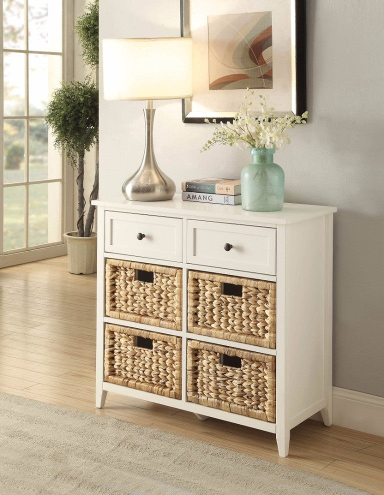 Console Table features 6 drawers in which 4 feature basket fronts. You can use this beautiful decorative console table in your hallway, living room or office. It provides ample space on the top for displaying photographs or other decor items. Its simple modern design is sure to enliven your home decor. Drawers assembly will be required.