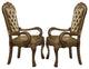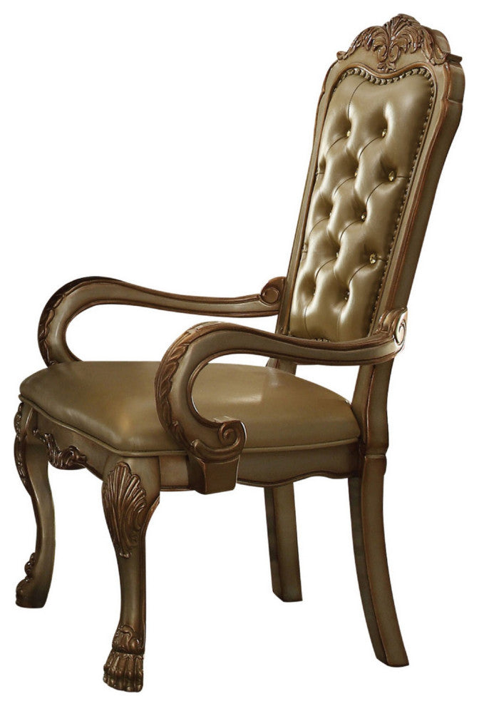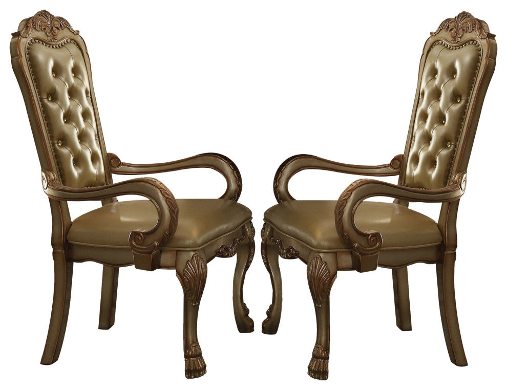 Benzara BM221496 Leatherette Arm Chair, Intricate Carvings, S/2, Gold