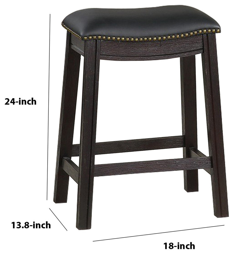 Benzara BM231999 Leatherette Counter Stool With Nailhead Trim, Set of 2, Black
