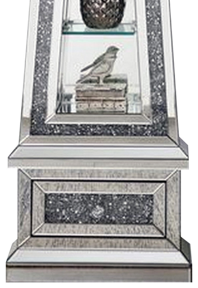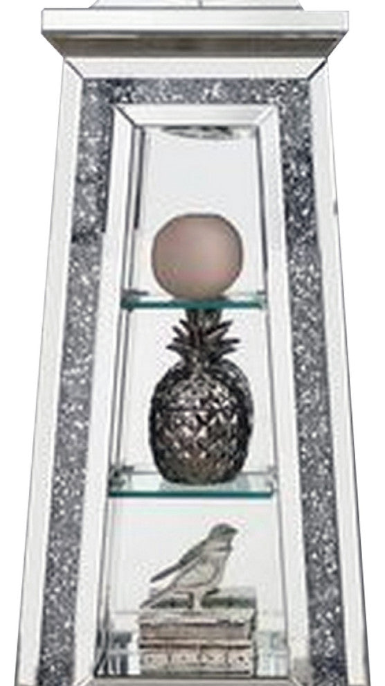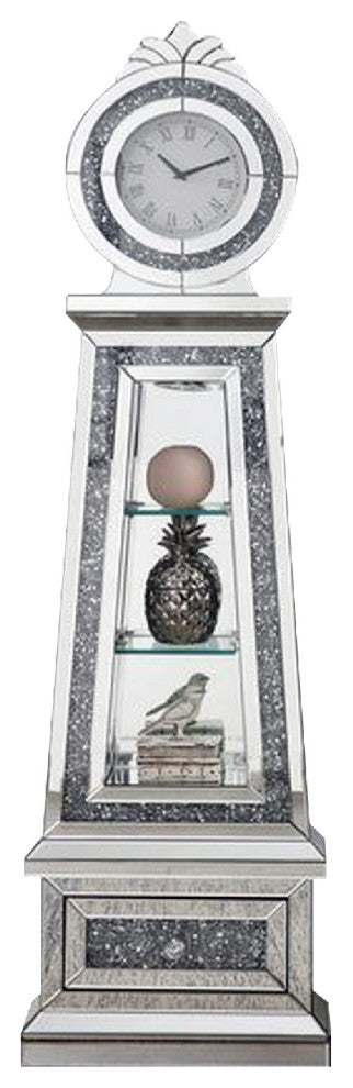 Benzara BM269090 Mirrored Grandfather Clock With 3 Open Compartments, Silver