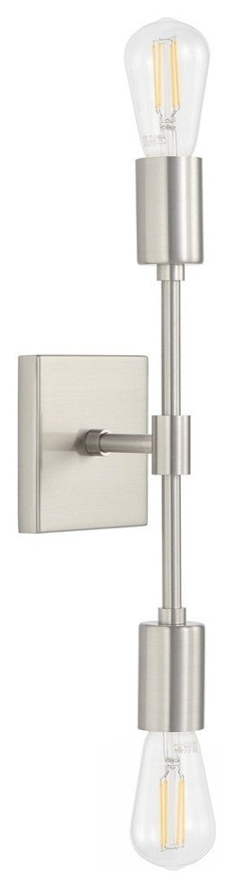 The Berbella two light wall sconce offers an industrial farmhouse design and a clean, contemporary look. The sleek metal finish, combined with dual exposed bulbs results in a stylish wall-mounted light fixture that coordinates beautifully with a wide range of home decor styles.